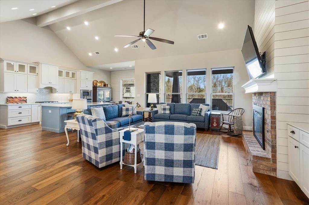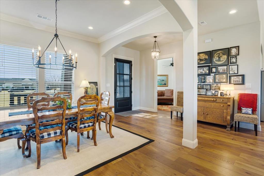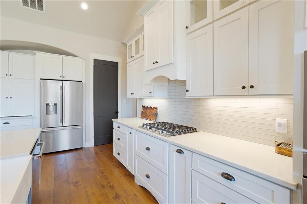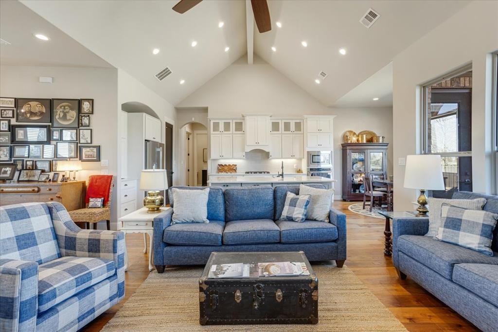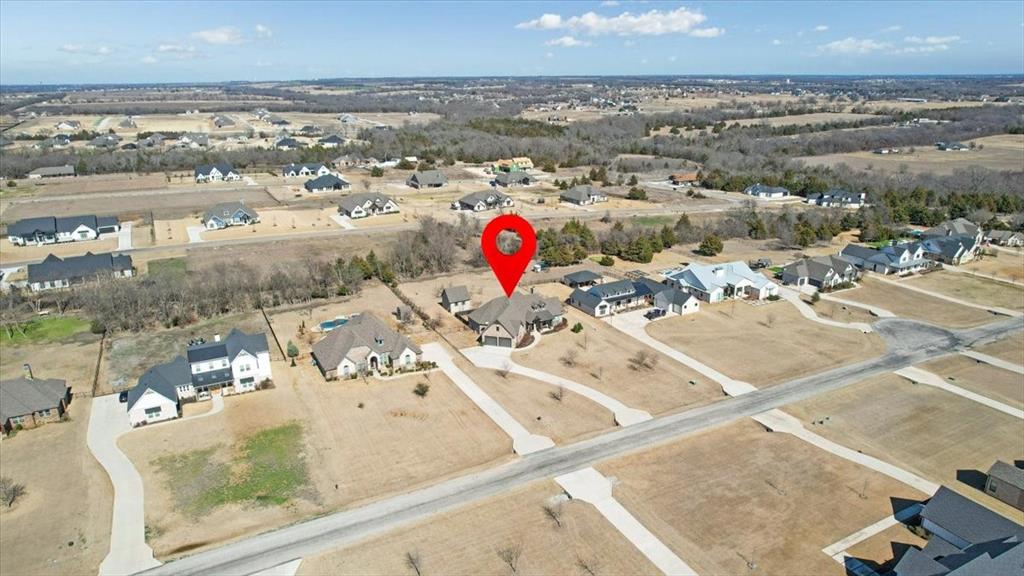 Stunning, Sophisticated Country Estate home on 1 acre. This custom-built home is so inviting, open, and comfortable. The finishes are beautiful inside and out. There are 3 spacious bedrooms, plus an office with a closet. The Primary Ensuite is truly a retreat. There are 2 separate vanities and a walk-in shower with a bench. The counters are black leathered granite, which look so sharp! The walk-in closet is amazing. It has room for an island dresser. The engineered wide-plank floors throughout most of the home are gorgeous. The only carpeted rooms are the 2 secondary bedrooms. The family room has a vaulted ceiling and features a floor-to-ceiling fireplace. Bookshelves and cabinets flank the fireplace. The family room is open to the kitchen and dining. The open plan is so inviting and is a great space for entertaining. The kitchen has a large quartz island, a gas cooktop, and lots of counter space. The large windows across the back of the home allow for tons of natural light. Besides the gorgeous home, the back porch and back yard will definitely draw you in! The stunning back porch is private and spacious, serving as an additional living area. The owners built a wood privacy fence for a small, secure yard for a dog or young child. The entire backyard is fenced with pipe fencing. Please ask the listing agent to send you the video of the backyard from last Spring. The yard is full of perennial flowers and fruit trees. The buyer of this property will literally get to enjoy the fruits of the labor from this Master Gardener seller. The 25x25 garage has stairs that walk up to a fully floored attic with spray foam insulation. The construction and energy efficiency in this home is top notch! The foundation has piers in the slab. This desirable neighborhood has some restrictions, but no HOA. You will know that you are HOME as soon as you turn onto this beautiful road. The tax rate is $1.67. Van Alstyne is a thriving small town with great schools. VAISD is A-rated